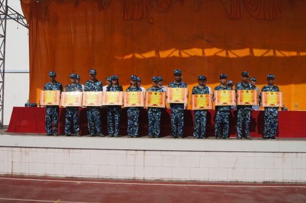 在表彰大会上,新生代表、班主任代表及教官代表都发表的感言。接着,学校吴一飞副校长宣布嘉奖令,并做了总结发言,他说,军训的总体成绩很好,希望同学们在今后的学习生活中,刻苦努力、不断提高自身综合素质,把自己塑造成为有德、有才、有为的农校人,更好地为社会服务。