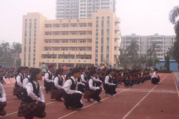 为了弘扬传统文化,推动文明礼仪教育,推行“多彩青春 文明同行”校园文明礼仪操,同时提高团队合作意识和集体主义,我校于2014年12月9日下午3时,在学校操场举行“多彩青春 文明同行”校园礼仪操比赛。