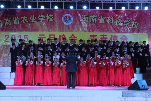 2014年12月29日晚上8时,海南省农业学校(海南省科技学校)在操场举行了2015“青春使命”元旦晚会。