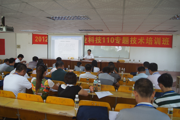 ????? 2012年7月30日下午,由海南省科技厅主办,我校承办的2012年海南省农业科技110专题技术培训班在我校隆重开班。本次培训班分三期进行,共120人参加,每期40名学员参加培训。这些学员全部来自各市县及乡镇的海南省农业科技110服务站。