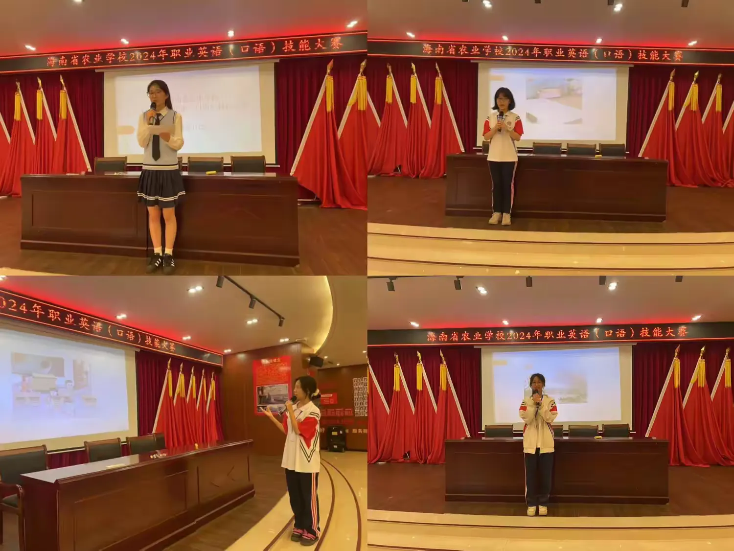 ???????英语竞赛是有效的学习交流平台,也对英语教学起着重要的指导作用。4月22日,海南省农业学校首届技能节职业英语(口语)技能大赛在教学楼举行。比赛设计“自我介绍”“看图说话”“回答问题”等三个环节,对选手们进行不同难度的口语测试,在此期间,选手们的熟练表达、自信微笑和临场发挥,都在展示着他们较高的英语水平和对英语学习的热爱和执着。