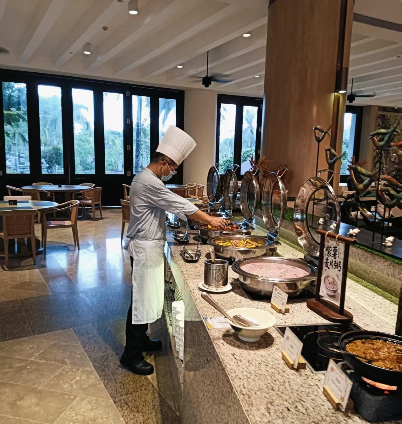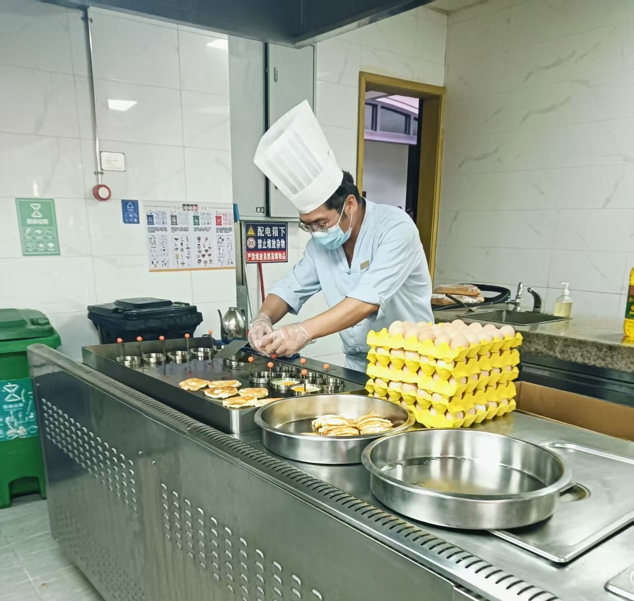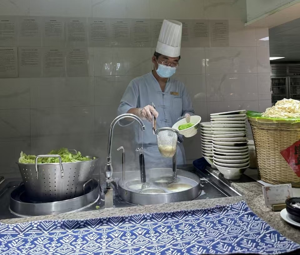 ??在此次实践中,邓雄老师担任西厨热厨主管岗位。他提前到岗、认真负责,主动协助厨师长完成厨房日常运营工作。期间,他先后参与了面档出品制作服务、蛋档出品制作服务、自助餐台看餐与餐品供应以及每日厨房开档收档、备餐等工作。邓雄老师的敬业精神和专业技能多次获得酒店管理层与同事们的高度赞誉。这份认可不仅是对邓雄老师个人职业能力的充分肯定,更是对我校教师培养质量与师德师风建设的集中体现。