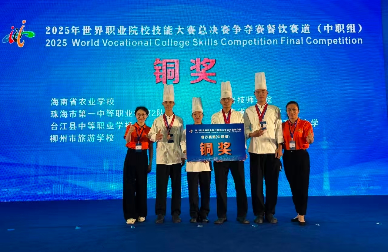 ??学校全体教职工同心同德,携手奋进,坚持立德树人的根本任务,全面推进“五育并举”,屡创佳绩。近三年来,在各级各类比赛中,累计获省级以上一等奖36项、二等奖43项、三等奖62项;尤其是在世界职业院校技能大赛的舞台上,我校师生连续两年迎难而上、奋勇拼搏,共斩获两金四铜的好成绩!在2025年中华人民共和国第三届职业技能大赛中,面对激烈角逐,农校师生在中式烹调(羊肉烘烤)和餐厅服务(世赛选拔)赛项中沉着应战,双双斩获大赛优胜奖。